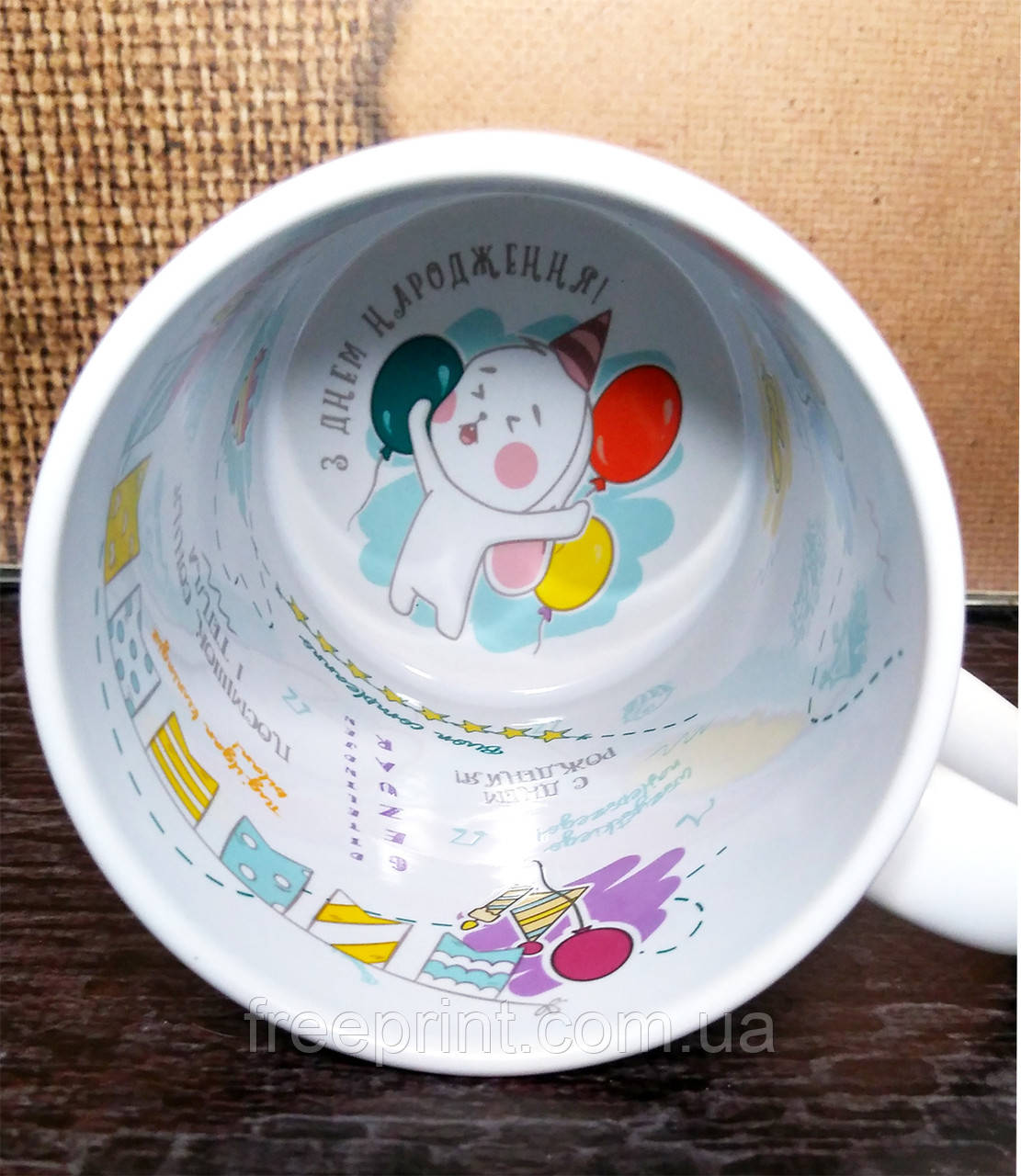 Чашка з внутрішнім та зовнішнім друком. Друк на двосторонніх чашках. Кружка з днем народження